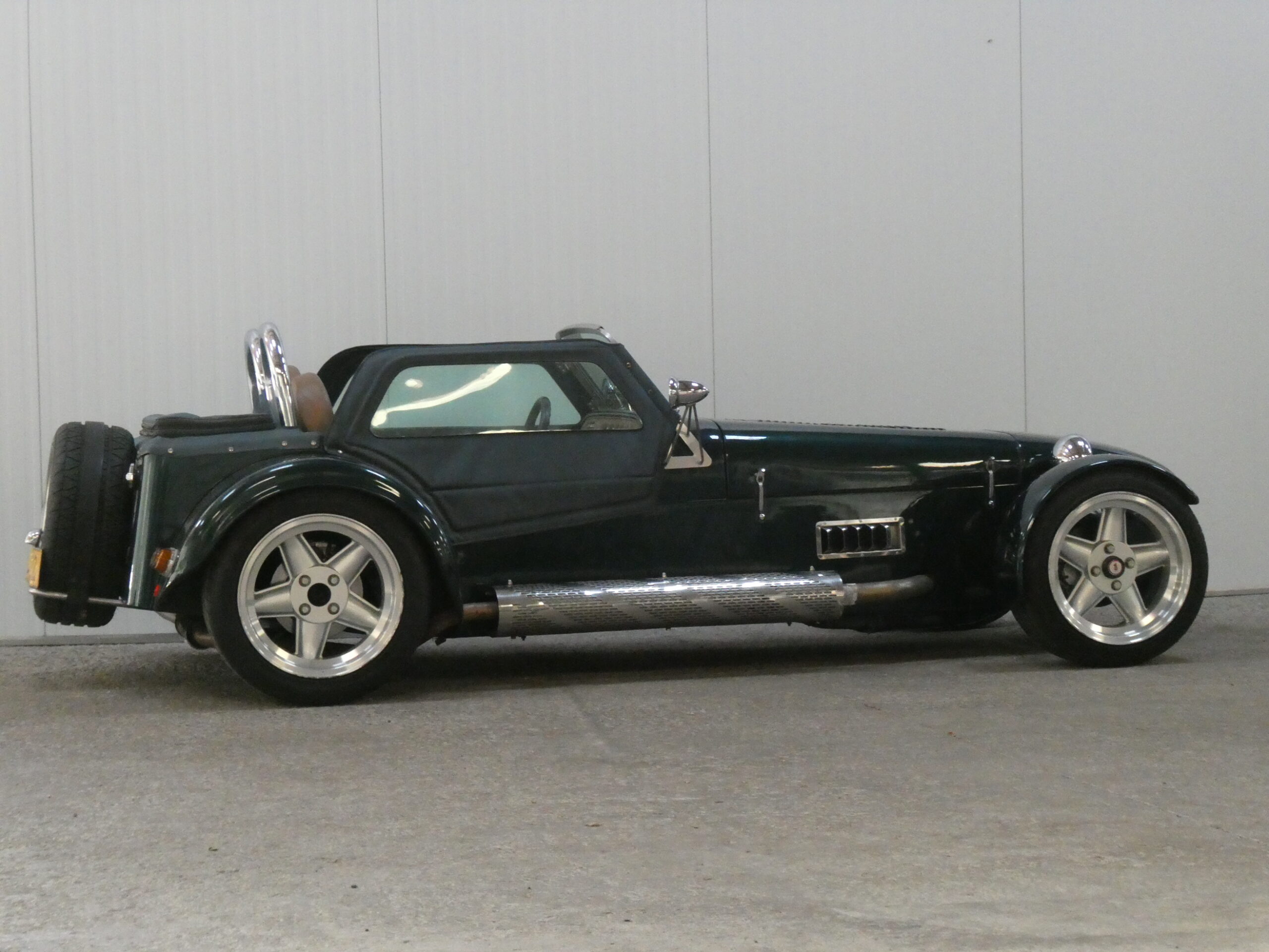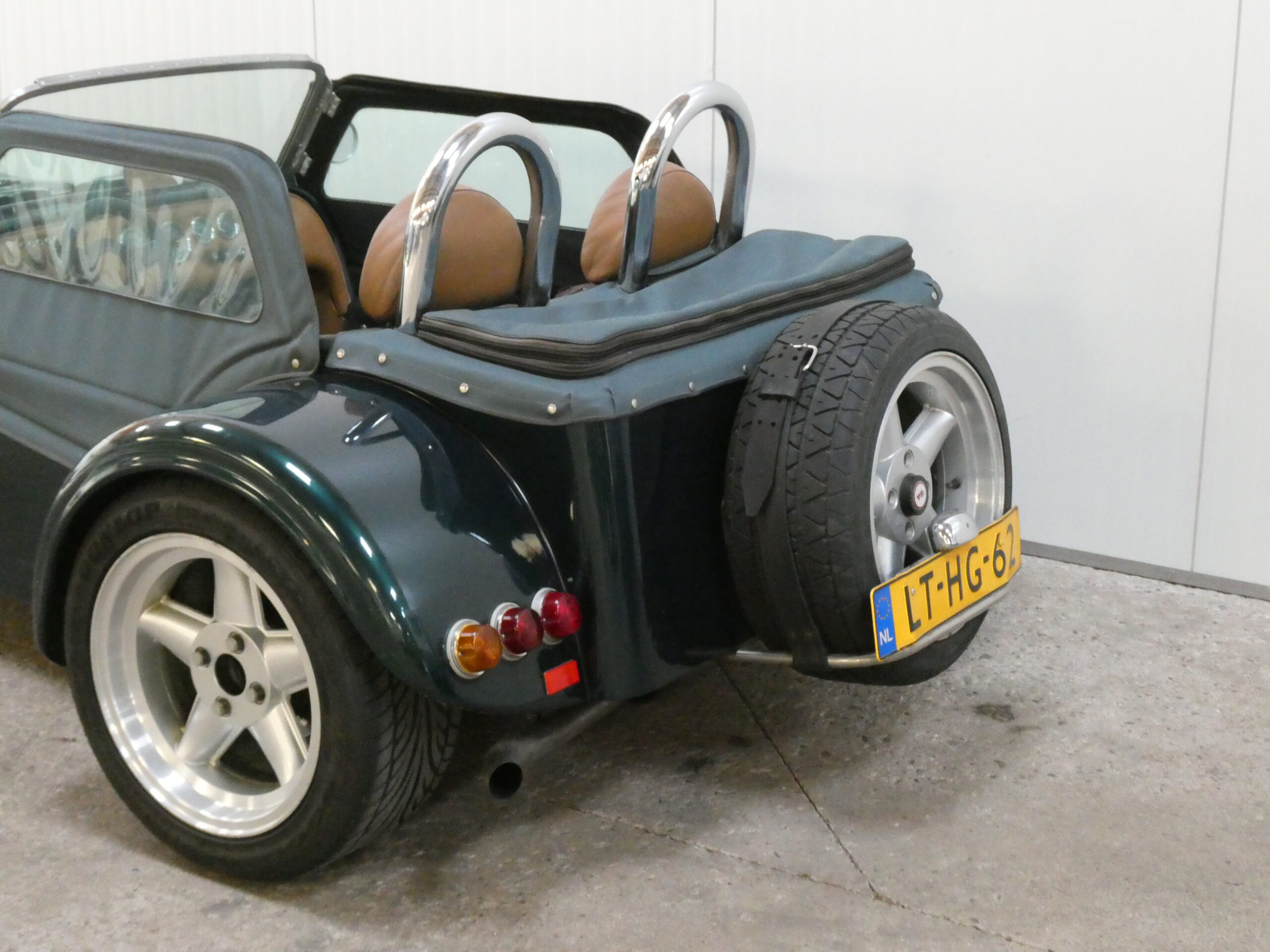 Het is een origineel links gestuurde auto, waardoor de uitlaat aan de rechterkant is geplaatst. Heel fijn bij het uitstappen (het kan een paar littekens schelen op den duur). 😉