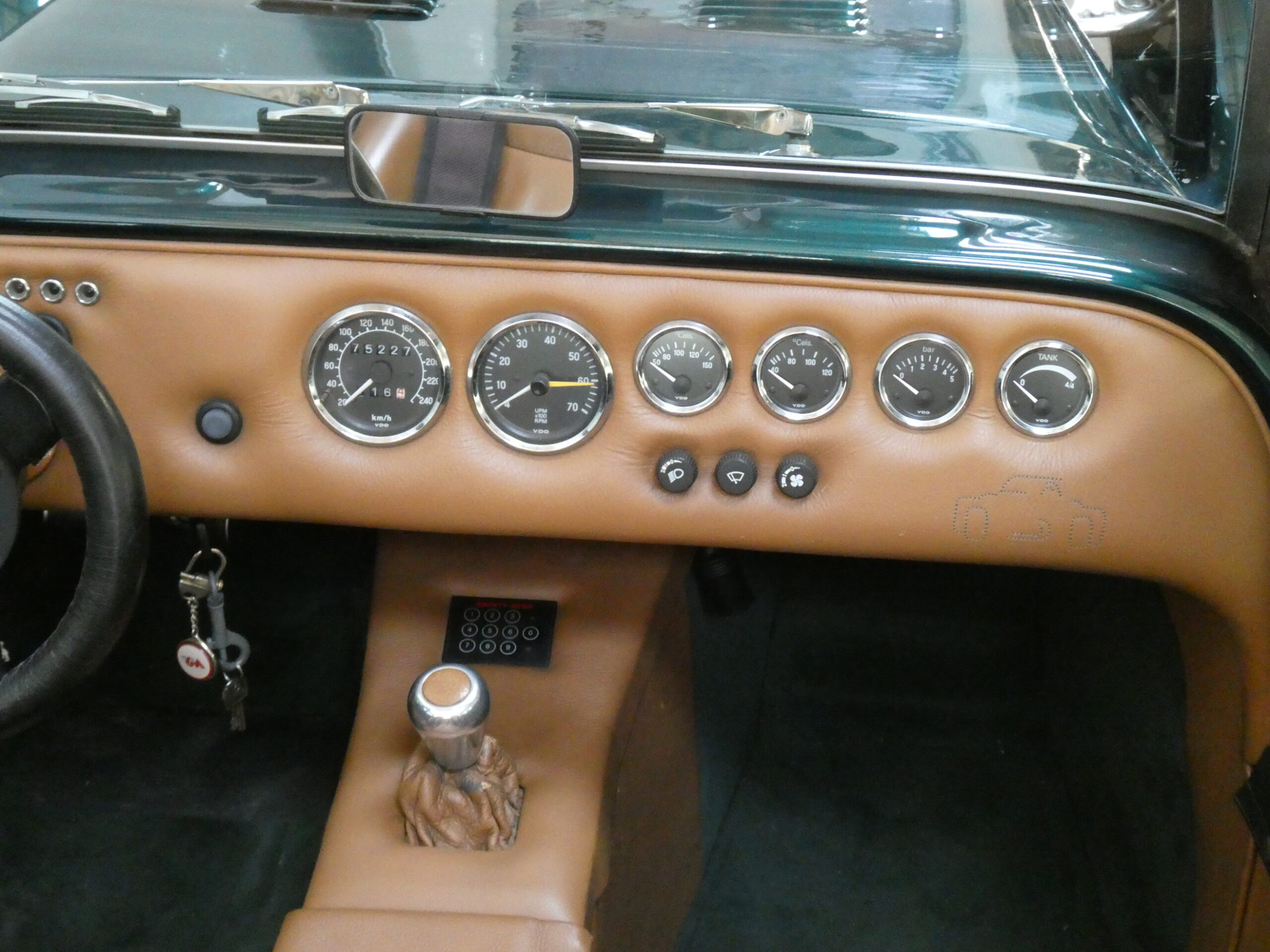 Met zijn donkergroen metallic lak en bruin lederen interieur heeft deze VM een mooie klassieke en tijdloze uitstraling.